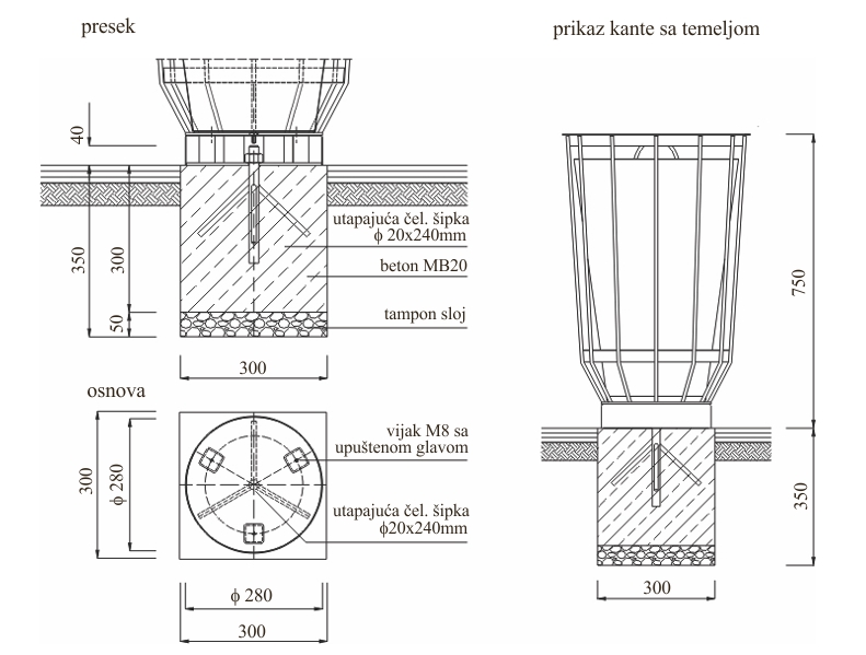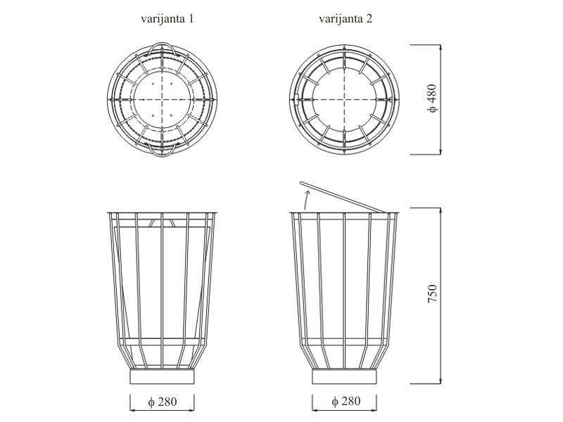 Korpa za otpatke, tip ATRIUM 2, pripada savremenim elem. urbane opreme baziranim na tradicionalnim uzorima, ekonomičnoj izradi i jednostavnoj primeni i održavanju. Korpa se može realizovati u dve varijante: sa pratećom uložinom od rolovanog čel. pocinkovanog lima ili prilagođena za upotrebu uz PVC kese za otpad. U oba slučaja, telo korpe je izrađeno od ravnomerno raspoređenih čel. šipki, međusobno povezanih obručima i donjim cilindričnim postoljem, formirajući peharastu strukturu gabaritnih dimenzija 480x750mm.