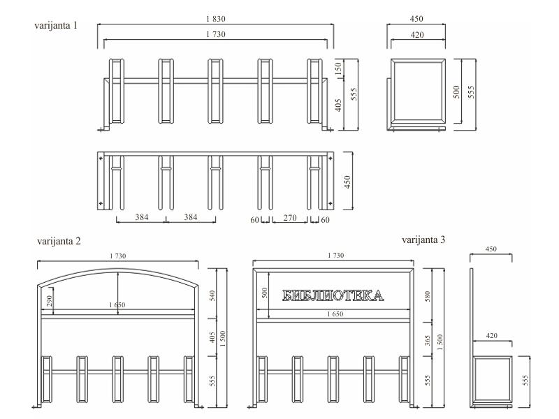 Držač bicikli, tip "BULEVAR" je klasičan element urbane opreme čije oblikovno rešenje objedinjava funkcionalne zahteve i dizajn koji se uklapa u stilski najraznovrsnije gradske sredine. U potpunosti se izrađuje od različitih čelič. profila povezanih u celovit sklop. Može se proizvoditi u zahtevanim dužinama, odnosno prema potrebnom broju bicikli, u osnovnom obliku ili prema predloženim varijantama sa razvijenim gornjim segmentom, sa namenom informativno-reklamnog prostora. Natpis i aplikacije na info tabli izrađuje sam naručioc ili se željeni motiv proseca CNC-om na čelič. limu, prema dostavljenom nacrtu.